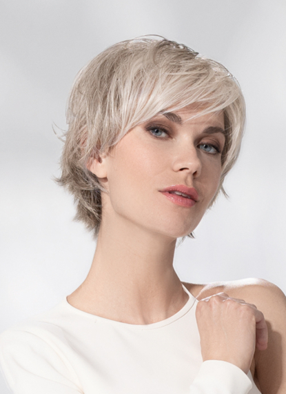 Die Kunsthaarperücke Avenue Small Soft aus der Hair Society Kollektion von Ellen Wille ist die perfekte Wahl für Frauen mit kleinerer Kopfgröße, die eine moderne Kurzhaarfrisur im gepflegten Stil wünschen. Der stylische Schnitt fällt weich und natürlich, die Spitzen sind leicht nach innen geformt und umrahmen das Gesicht charmant. Der fein abgestufte Pony bringt Bewegung in die Frisur und sorgt für einen frischen, femininen Ausdruck. Das Modell besteht aus hitzebeständiger Premiumfaser, die bis 130 °C geformt werden kann – ob mit Föhn, Glätteisen oder Lockenstab.Die Soft-Verarbeitung steht für 100 % Handknüpfung, wodurch die Perücke besonders leicht und flexibel ist. Ein durchgehender Filmansatz / Lace Front verleiht eine natürliche Stirnlinie und ermöglicht ein variables Styling ohne sichtbare Ränder. Diese synthetische Damenperücke kombiniert elegantes Design, perfekte Passform und hohen Tragekomfort. Die Damenperücke Avenue Small Soft überzeugt durch ihren klassischen Look mit moderner Leichtigkeit – ideal für den Alltag oder den besonderen Auftritt. Erhältlich in vielen natürlichen Farbtönen der Ellen Wille Kollektion.