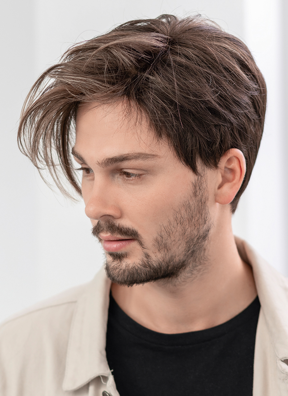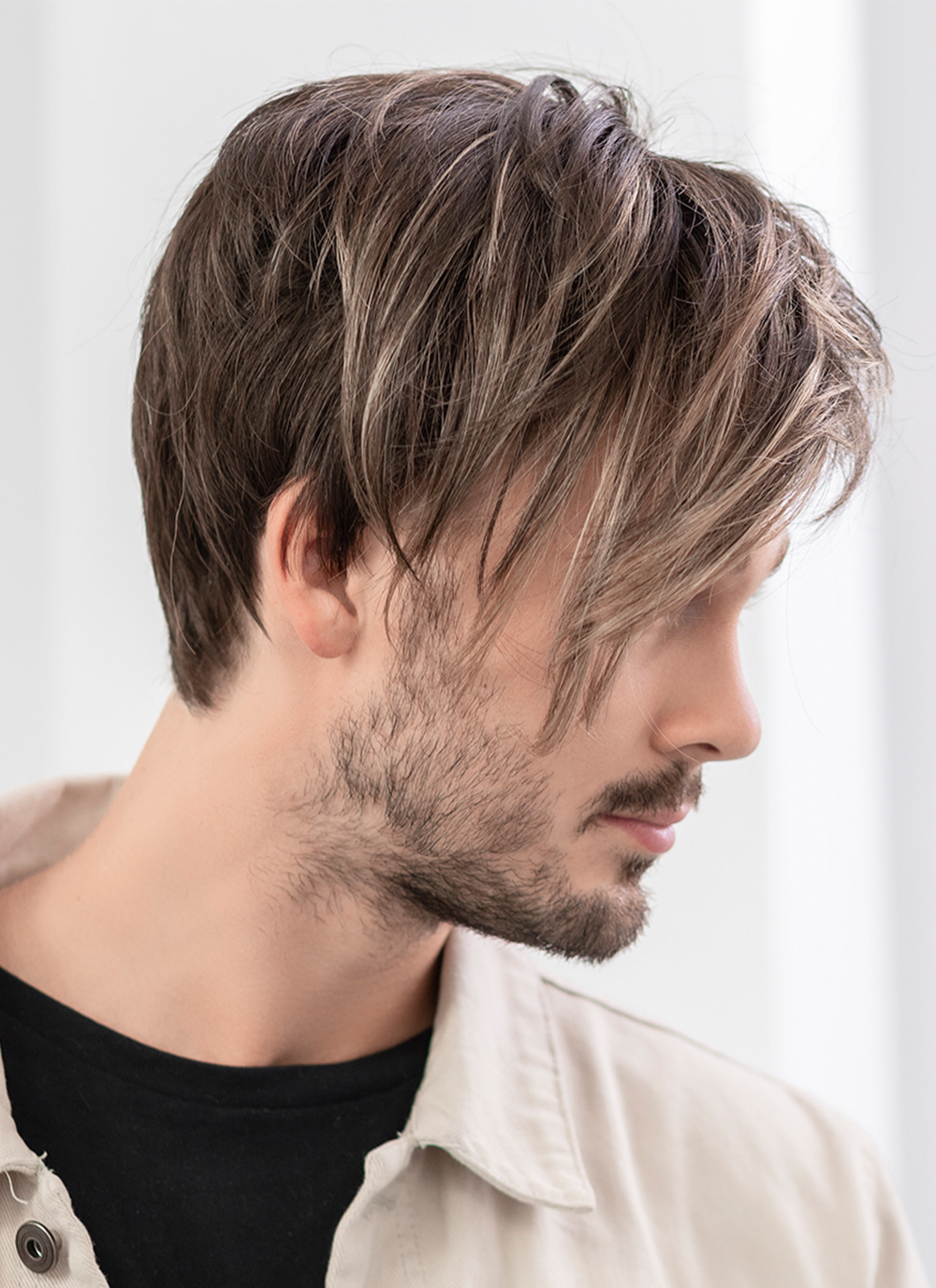 Die Ellen-Wille-Perücke Dave bietet Ihnen eine top moderne Herrenfrisur in verschiedenen, modischen Haarfarben mit einem top Tragekomfort und sehr authentischem Look. Am Hinterkopf und an den Seiten sind die kräftigen Kunsthaare etwas kürzer gehalten, während sich am Oberkopf längere, durchgestufte Haare befinden. Dadurch wirkt die Frisur sehr angesagt und lässt sich flexibel nach Ihren Wünschen stylen - lässig aus dem Gesicht oder als Pony frisiert. Da es sich um robustes, formbares Kunsthaar handelt, können die Haare sogar Hitzeeinwirkung problemlos vertragen. Diese Herrenperücke aus der Hairformance Collection erhalten Sie bei uns in der Standardgröße für Männer für einen Kopfumfang von 58-60 cm.