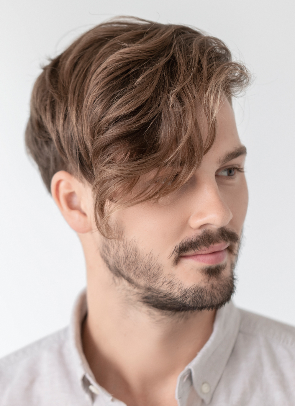Diese Konstruktionsweise schafft einen naturgetreuen Haaransatz und ermöglicht es, die Haare in verschiedene Richtungen zu stylen. Dies sorgt für ein besonders realistisches und natürliches Aussehen.
