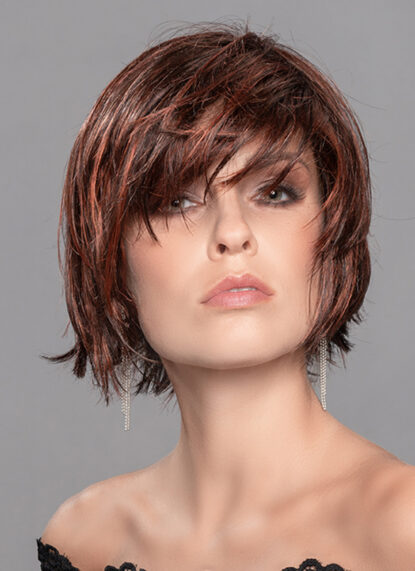 Moderner, fransiger Bob für einen attraktiven Look – gerade der freche Pony der Kunsthaarperücke Echo von Ellen Wille lässt Sie jung und sexy wirken! Sie erhalten dieses Modell aus der Perucci-Kollektion in der Standardgröße (54-56 cm) - in unserem Sortiment aus aufregenden Farbtönen finden Sie definitiv eine Farbe, die zu Ihrem Typ passt. Das leichte Kunsthaar der Damenperücke zeichnet sich nicht nur seine Geschmeidigkeit und seine Farbintensität aus, es ist auch äußerst unkompliziert. Die hochwertigen Synthetikfasern behalten selbst nach dem Waschen ihre permanente Form und fallen von alleine in ihre stets top gestylte Frisur zurück. Der größte Teil der Montur besteht aus luftdurchlässigen und anschmiegsamen Tressen, die Ihnen einen hohen Tragekomfort und Atmungsaktivität bieten. Die Kombination aus einem handgeknüpften Monofilament-Stoff am Scheitel und dem innovativen Filmansatz im Stirnbereich bewirkt eine besonders natürliche Optik der Kunsthaarperücke von Ellen Wille.