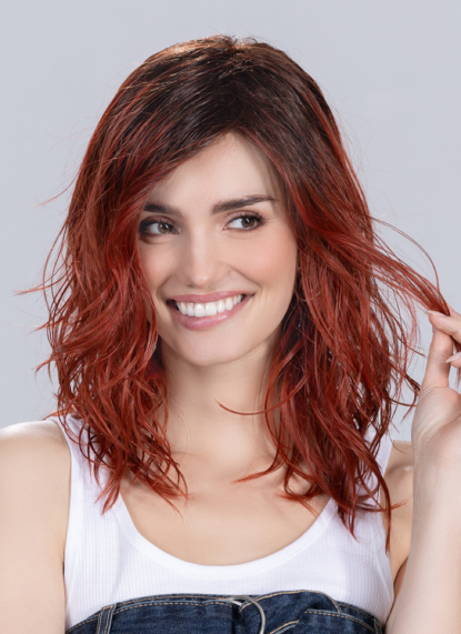 Die sanften Beach Waves der modischen Ellen Wille-Perücke Tabu verleihen Ihnen einen lässigen, sportlichen Look, der mit einer besonders natürlichen Optik und strahlenden Haarfarben punktet! Das feine Kunsthaar dieser Damenperücke aus der vielseitigen Perucci Collection besitzt ein lebendiges Volumen und eine wunderschöne Farbbrillanz, sodass die Haare im Licht seidig schimmern. Im Scheitel- bzw. Wirbelbereich wurden die hochwertigen Kunstfasern per Hand auf ein transparentes Teil-Monofilament geknüpft, wodurch Ihr Zweithaar besonders naturgetreu wirkt. Die übrige Montur wurde aus elastischen Baumwollbändern zusammengenäht. Dieses flexible Tressengewebe passt sich so angenehm Ihrem Kopf an und verleiht dieser standardgroßen Kunsthaarperücke (54-56 cm) eine perfekte Passform! Sie wollen Ihren Style einmal ändern und die Haare beispielsweise zu einem frechen Zopf flechten oder elegant hochstecken? Der an der Stirn eingearbeitete Filmansatz macht stirnfreie Frisuren problemlos möglich!