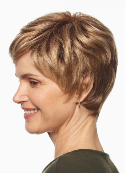 Bei dieser Perücke mit Filmansatz handelt es sich um eine Variante, die aus einem sehr feinen Tüllstoff hergestellt wird. Dieser ist so leicht geknüpft, dass er von einem natürlichen Haaransatz nicht mehr zu unterscheiden ist.