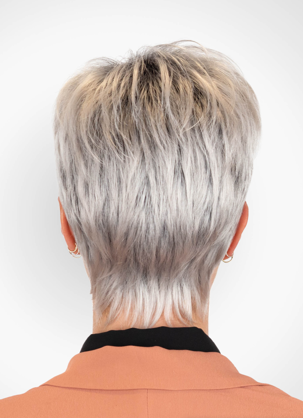 Die Kunsthaarperücke Heather präsentiert sich als femininer Kurzhaarschnitt mit feiner Struktur und fransiger Leichtigkeit. Ihr moderner Pixie-Look wirkt elegant, modisch und unkompliziert zugleich. Der längere Pony kann seitlich oder locker in die Stirn gestylt werden und verleiht dem Gesicht Ausdruck und Weichheit. Dieses Modell aus der Rene of Paris Kollektion von Fancy Hair überzeugt mit ihrer pflegeleichten Kunstfaser, die sich durch natürliche Farbbrillanz und dauerhafte Formtreue auszeichnet. Ideal für Frauen, die sich ein unkompliziertes Styling wünschen, ohne auf Natürlichkeit zu verzichten.Die Montur besteht aus einer Tresse mit Filmansatz, soft unterlegt und unterknüpft. Diese Bauweise bietet angenehmen Komfort, sicheren Halt und eine natürliche Optik. Der Filmansatz sorgt dafür, dass der Haaransatz kaum von echtem Haar zu unterscheiden ist. Die Damenperücke Heather ist in vielen modernen Farbvarianten erhältlich – von eleganten Grautönen bis zu warmen Blonds. Sie ist die perfekte Wahl für Frauen, die eine feminine Kurzhaarperücke mit Stil, Qualität und Leichtigkeit suchen.