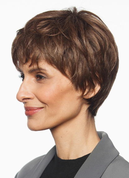 Elegante und gleichzeitig sportliche Kurzhaarfrisur, die speziell für etwas kleinere Damenköpfe entwickelt wurde – entdecken Sie die vielfältigen Vorteile der Fancy Hair Perücke Kyu S! Klassische, schlicht gehaltene Haarfarben verleihen Ihnen einen modernen Look, während die Ihre Frisur besonders unkompliziert in der Handhabung und im Styling ist. Diese Kunsthaarperücke aus der Sentoo-Collection sitzt bequem und zuverlässig bei einem Kopfumfang bis 53 cm. Die gesamte Montur besteht aus einem weichen und hautverträglichen Monofilament. Der feine Filament-Stoff zeichnet sich weiterhin durch eine sehr natürlich wirkende Transparenz aus, da es so menschliche Kopfhaut imitiert und es so aussieht, als würde das glänzende Kunsthaar direkt aus Ihrem Kopf wachsen. An der Stirn dieser attraktiven Damenperücke befindet sich als besonderes Highlight ein innovativer Filmansatz, der dank einer auslaufenden Knüpfung einen authentischen Haaransatz simuliert. Die geschmeidigen Kunsthaare besitzen nicht nur eine großartig natürliche Optik, sondern verleihen Ihrer Frisur auch ein kraftvolles Volumen!