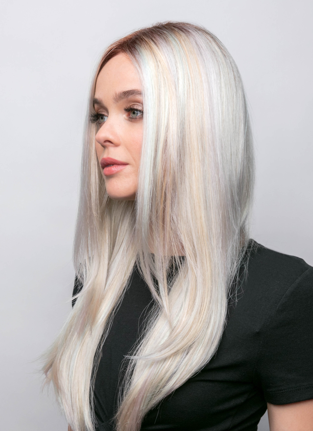 Die Kunsthaarperücke Lennox aus der Rene of Paris Kollektion von Fancy Hair ist ein ausdrucksstarker Langhaar-Look für moderne Frauen, die Eleganz und Natürlichkeit kombinieren möchten. Die glatten, langen Haarpartien fallen geschmeidig über Schultern und Rücken und wirken besonders feminin. Der Mittelscheitel unterstreicht den natürlichen Charakter dieser Frisur, während die seidige Oberfläche für ein luxuriöses Tragegefühl sorgt. Diese Damenperücke bietet unzählige Stylingmöglichkeiten: glatt und elegant für den Business-Look, sanft gewellt für Freizeit und Events. Die hochwertige Kunstfaser garantiert Formbeständigkeit, Elastizität und langanhaltende Farbbrillanz – ohne Aufwand.Die Montur kombiniert extra breiten Filmansatz (Lace Front), Monoscheitel und soft unterlegte, unterknüpfte Tressen. Dadurch entsteht eine absolut natürliche Optik – selbst bei hochgesteckten Frisuren wirkt der Haaransatz täuschend echt. Der Monoscheitel lässt das Haar so fallen, als wachse es direkt aus der Kopfhaut. Mit ihrer großzügigen Farbauswahl von sanften Naturtönen bis hin zu modernen Farbverläufen ist Lennox eine luxuriöse, aber alltagstaugliche Langhaarperücke, die Komfort und Stil perfekt vereint.