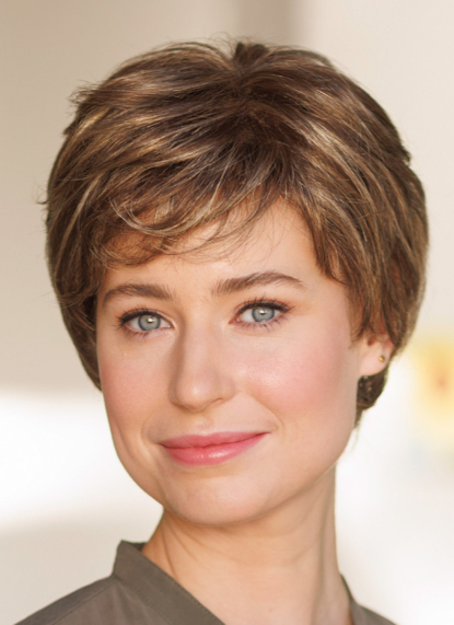 Die kleidsame Kunsthaarperücke Nicola von Fancy Hair, die zur Kollektion Sentoo zählt, ist ganzheitlich handgeknüpft und daher besonders komfortabel! Das Skelett der Perücke begeistert mit einer Leichtigkeit ohnegleichen, da es aus einem filigranen Stoff besteht, der Tüll ähnelt! Auf diesen wurden die Kunstfasern in kleinteiliger Handarbeit aufgebracht. Die Damenperücke überzeugt dadurch mit einem natürlichen Volumen, das nicht zu stark aufträgt! Außerdem ist das Modell Nicola äußerst pflegeleicht, da es aus synthetischen Fasern hergestellt wurde. Es reicht vollkommen aus, die Perücke einmal in der Woche zu waschen, um ein sauberes Gefühl zu haben. Danach nimmt sie ihre permanente Frisur von selber wieder an und Sie können ohne großen Zeitaufwand in den Tag starten! Mit diesem sportlichen Modell von Fancy Hair können Sie Ihr Leben mit Leichtigkeit und voller Spontanität genießen!