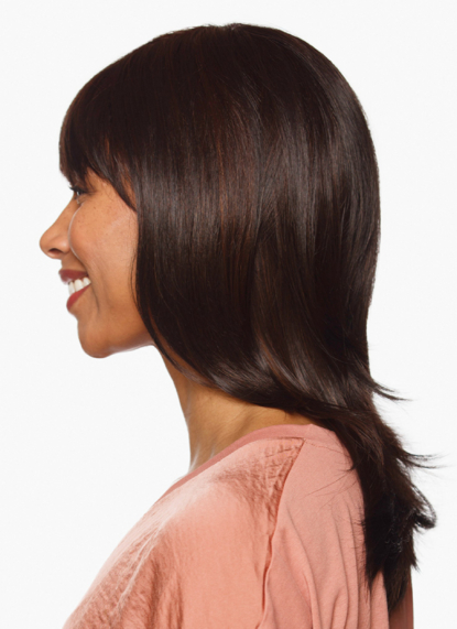 Ob im Alltag, bei der Arbeit oder auf einer schicken Dinner-Party – mit der attraktiven Damenperücke Novella von Fancy Hair machen Sie einfach immer eine gute Figur! Diese Kunsthaarperücke aus der Sentoo-Collection besticht mit einem traumhaft femininen Cut, der durch den verspielten Pony und die sanften Stufen abgerundet wird. Sie erhalten dieses Modell bei uns in der Standardgröße (54-56 cm) und in einer Vielzahl an natürlich aussehenden Haarfarben, die alle einen seidigen Schimmer besitzen. Diese Perücke aus Kunsthaar kombiniert die authentische Optik eines Teil-Monofilaments, welches perfekt menschliche Kopfhaut imitiert, mit angenehm weichen Baumwolltressen. Diese elastischen, zu einem dehnbaren Gewebe vernähten Bänder schmiegen sich sanft an Ihren Kopf an. Gleichzeitig sorgen Sie dafür, dass Ihr Zweithaar stets zuverlässig und sicher sitzt, ohne dabei verrutschen zu können!