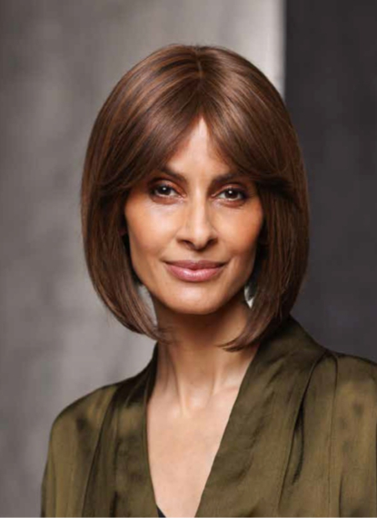 Die Kunsthaarperücke Phebe aus der Sentoo Creative Kollektion von Fancy Hair vereint moderne Eleganz mit natürlicher Leichtigkeit. Diese stilvolle, mittellange Frisur begeistert durch ihren weichen Fall, harmonische Proportionen und eine feminine Ausstrahlung, die zu nahezu jeder Gesichtsform passt. Die Haarlänge reicht bis knapp über die Schultern und zeigt sanft abgestufte Partien, die für lebendige Bewegung und eine feine Silhouette sorgen. Der glatte Pony fällt locker auf die Stirn und rahmt das Gesicht weich ein – ein Look, der sowohl alltagstauglich als auch elegant wirkt. Das Modell Phebe besteht aus der exklusiven VHair-MIX-Faser. Diese hochwertige Mischung aus langlebiger, leichter VHair-Faser und hitzebeständiger Flexi-Faser erlaubt Stylingvarianten bis etwa 130 °C. Dadurch lässt sich die Frisur individuell anpassen – ob elegant geglättet, mit sanften Wellen oder leichtem Volumen. Die Faser fühlt sich angenehm weich an, fällt natürlich und überzeugt durch ihren realistischen Glanz, der kaum von Echthaar zu unterscheiden ist. Gleichzeitig ist sie pflegeleicht und formstabil – perfekt für Frauen, die eine unkomplizierte, aber anspruchsvolle Frisur wünschen.Die Montur der Phebe ist ein echtes Komfort-Highlight: Mono-Top, vollständig handgeknüpft, mit feinem Filmansatz (Lace Front) und Antislip-Partien für sicheren Halt. Durch die Handknüpfung wird jedes einzelne Haar sorgfältig in die Montur eingearbeitet, sodass ein natürlicher Fall und eine authentische Kopfhautoptik entstehen. Der Filmansatz an der Stirn sorgt für einen fließenden Übergang und ermöglicht ein Styling aus dem Gesicht – ganz ohne sichtbare Ränder. Die Antislip-Partien geben zusätzliche Sicherheit, auch bei empfindlicher Kopfhaut oder aktiver Bewegung. Mit ihrem geschmeidigen Stil und der hochwertigen Verarbeitung ist Phebe die perfekte Wahl für Frauen, die Natürlichkeit und Eleganz gleichermaßen schätzen. Der mittellange Schnitt wirkt klassisch, aber niemals langweilig – feminin, gepflegt und mühelos modern. Er lässt sich wunderbar kombinieren, passt zu jedem Anlass und verleiht seiner Trägerin eine ausdrucksstarke, selbstbewusste Ausstrahlung. Erhältlich in vielen natürlich wirkenden Farbnuancen der Sentoo Creative Kollektion, die feine Übergänge und harmonische Schattierungen bieten – von hellen Blondtönen bis zu edlen Grau- und Braunnuancen.