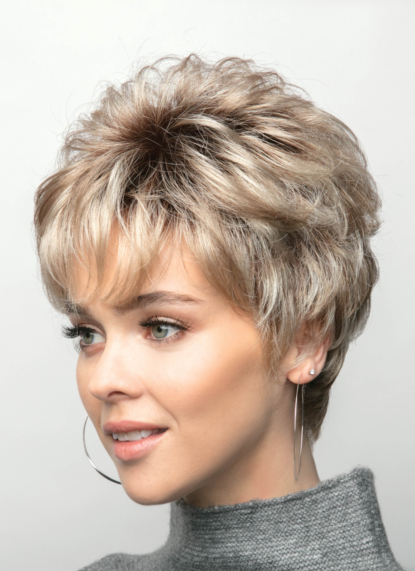 Die Kunsthaarperücke Rina ist ein schwungvoller Kurzhaarschnitt mit weichen Stufen und sportlich-elegantem Charakter. Die fransige Struktur bringt Dynamik in den Look, während die sanft anliegenden Nackenpartien für eine gepflegte, klare Linie sorgen. Der Pony fällt locker in die Stirn und verleiht der Frisur jugendliche Frische. Das hochwertige Kunsthaar überzeugt mit realistischem Glanz und natürlicher Bewegung. Es ist leicht, pflegeleicht und formstabil – perfekt für aktive Frauen, die Wert auf Stil und Alltagstauglichkeit legen.Die Montur besteht aus weichen Tressen, soft unterlegt und unterknüpft. Diese Fertigung sorgt für hohen Tragekomfort und ein lebendiges Volumen der Haarfasern. Die Damenperücke Rina ist in vielen modernen Farben erhältlich – von klassischen Naturtönen bis hin zu modischen Highlights. Eine unkomplizierte, feminine Kurzhaarperücke, die Natürlichkeit, Leichtigkeit und Stil perfekt vereint.