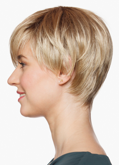 Seidiges Haar, intensive Haarfarben und ein besonders modernen und attraktiver Kurzhaarschnitt – die meisterhaft gefertigte Damenperücke Rose von Fancy Hair überzeugt mit einer ausgesprochenen Natürlichkeit, einer bequemen Passform und einem angesagten Look! Die lässige Ponypartie verleiht Ihnen ein absolut trendy Aussehen, während das großartige Volumen am Oberkopf Ihre Frisur besonders lebendig und kräftig erscheinen lässt. Dank einer speziell eingearbeiteten Filmansatzes an der Stirn können Sie das Haar jedoch auch völlig problemlos aus dem Gesicht frisieren, der Perückenrand wird stets gekonnt kaschiert. Die Montur dieser Kunsthaarperücke aus der Sentoo-Collection kombiniert ein elastischen und atmungsaktiver Tressen-Gewebe mit einem transparenten, handgeknüpften Teil-Monofilament im Scheitel- bzw. Wirbelbereich. Die weichen Baumwolltressen sorgen dafür, dass sich diese standardgroße Fancy Hair-Perücke (54-56 cm) sanft und zuverlässig an Ihren Kopf anschmiegt.