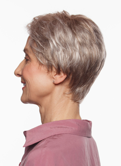 Sportlich und überaus kess wirkt die Kunsthaarperücke Svenja aus der Kollektion Sentoo von Fancy Hair! Von Meisterhand durchgestuft ist der Cut absolut modern! Er wurde per Hand in aufwendiger Kleinarbeit auf eine bemerkenswert hochwertige Montur aufgeknüpft, die sowohl für ein außergewöhnlich zuvorkommendes Tragegefühl als auch für verblüffende Authentizität steht! Überwiegend besteht diese aus einem tüll-ähnlichen Stoff, der unvergleichlich leicht ist! Darüber hinaus wurden ein Monofilamentgewebe und ein Filmansatz eingenäht, die beide die Fähigkeit besitzen, einen scheinbar echten Haaransatz herbeizuführen! Auf diese Weise ist das Zweithaar kaum als solches zu identifizieren! Überzeugen Sie sich selbst von dem natürlichen Look der handgeknüpften Damenperücke Svenja von Fancy Hair!