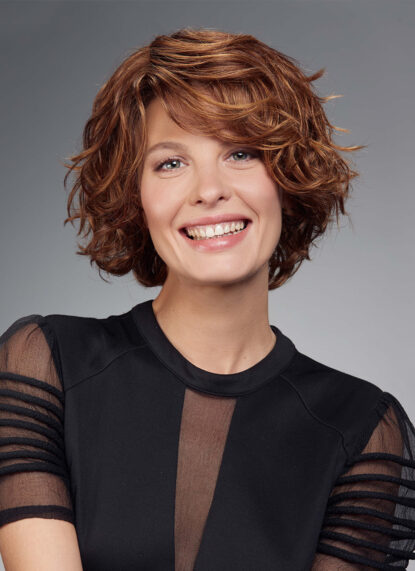 Die sanften Wellen und der leicht durchgestufte Schnitt der mittellangen Kunsthaarperücke Amelie verleihen der Frisur ein unglaubliches Volumen und eine kraftvolle Fülle. Dadurch wirken die feinen Kunsthaare besonders lebendig, außerdem zeichnen sie sich durch eine intensive Farbbrillanz und Geschmeidigkeit aus. Wie alle Kunsthaarperücken behält auch dieses Modell aus der Classic Collection von GFH selbst beim Waschen die trendy Frisur bei und die Haare fallen wie von allein wieder in ihre ursprüngliche Form zurück. Diese unkomplizierte Handhabung wird durch einen natürlichen Look und eine bequeme Passform abgerundet. Da der Großteil der Montur aus einem weichen Baumwollgefecht aus Tressen besteht, schmiegt sich Ihr Zweithaar sanft an Ihren Kopf an. Einen optimalen Halt bietet diese GFH-Perücke bei einem Kopfumfang von 54-56 cm. Im Scheitel- bzw. Wirbelbereich wurde ein transparentes Teil-Monofilament verarbeitet, welches genau wie der Filmansatz an der Stirn einen authentischen Haarwuchs simuliert!