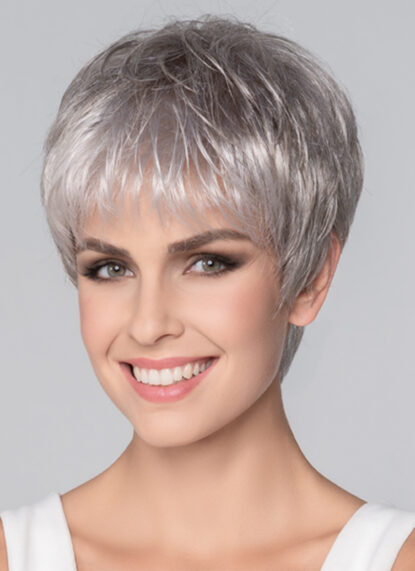 Klassisch, modern und unkompliziert – die locker kurz gehaltene Kunsthaarperücke Cento Mono aus der vielseitigen Stimulate Collection von GFH bietet Ihnen ein pflegeleichtes, natürlich wirkendes und komfortables Zweithaar! Die lässige Ponypartie kann dank eines speziellen Filmansatzes entweder locker in das Gesicht frisiert oder elegant aus der Stirn gestylt werden, ganz nach Ihrem Wunsch! Sie können dieses schicke Damenmodell bei uns in der Standardgröße erwerben, die eine ideale Passform bei einem Kopfumfang von 54-56 cm verspricht. Dabei sorgen vor allem die dehnbaren Baumwolltressen im unteren Bereich der Montur dafür, dass sich Ihr Zweithaar sanft und sicher an Ihren Kopf anschmiegt, ohne verrutschen zu können. Zudem können Sie sich auf eine ausgesprochen natürliche Optik verlassen, die diese GFH-Perücke von einem hochwertigen Monofilament am Oberkopf erhält. Dieser hauchzarte, durchscheinende Stoff wurde komplett handgeknüpft! So sieht es an den Stellen, wo die Kopfhaut durch die Haare schimmert, so aus, als würde ein echter Haarwuchs vorliegen!