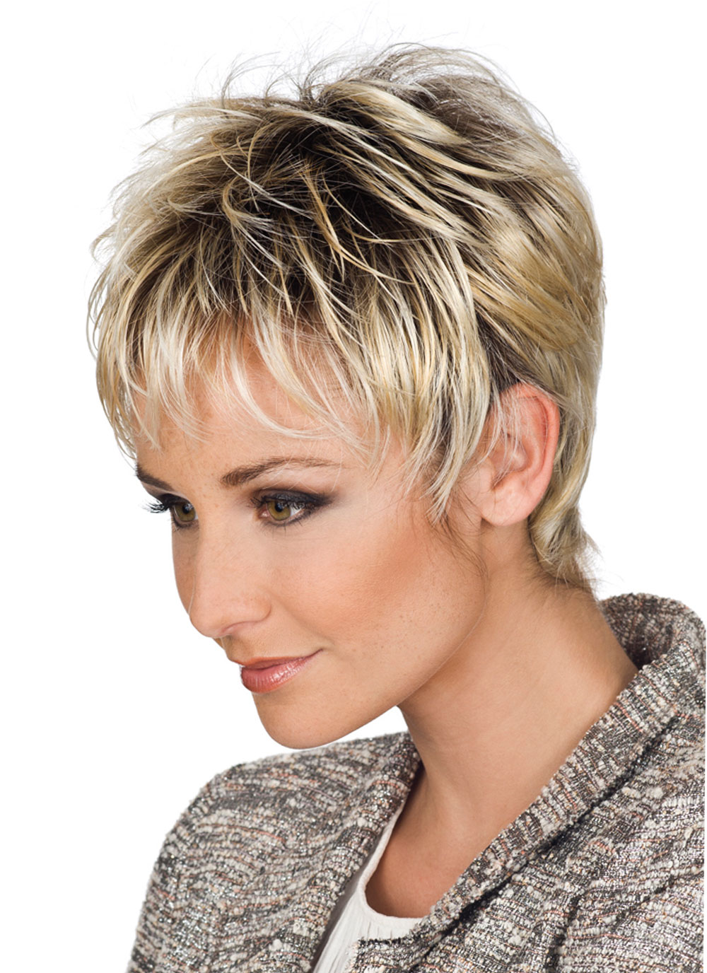 Jung und dynamisch gibt sich der Kurzhaarschnitt Extreme Roma der Kunsthaarperücke von Gisela Mayer, die zur aktuellen Classic-Kollektion zählt! Die in der Standardgröße (54-56 cm) verfügbare Tressenperücke mit eingearbeitetem Teil-Monofilament ist äußerst unkompliziert und daher für jede spontane Frau ein ideales Modell! Sie muss nach dem Waschen lediglich an der frischen Luft trocknen und fällt ohne Ihr Zutun wieder in ihren Ursprungszustand zurück! Auf diese Weise können sie sicher sein, lange etwas von der pfiffigen Frisur zu haben! Durch das Monofilament im Bereich des Punktscheitels sieht diese absolut natürlich aus! Zeigen Sie Ihren Mitmenschen Ihre dynamische Seite mit der Damenperücke Extreme Roma von Gisela Mayer!