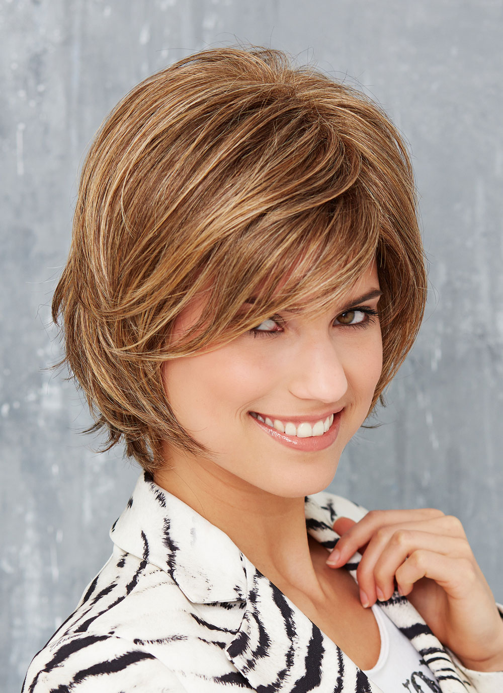 Dieser raffinierte halblange Schnitt zeigt Geschmack! Die Kunsthaarperücke Cosmo Kiki Lace aus der Cosmopolitan-Kollektion von Gisela Mayer verfügt über einen schrägen Pony und lässt im unteren Bereich eine pfiffige Stufung erkennen. Der Farbmix erzeugt zudem einen trendigen Strähnen-Look, der jung und frech wirkt! Damit die schöne Frisur rundum natürlich herüberkommt, wurde im Bereich des Wirbels ein Teil-Monofilament eingesetzt, welches die darunter liegende Kopfhaut durchscheinen lässt und auf diese Weise für einen optisch echt wirkenden Haarwuchs sorgt! Mit dem Ziel, auch im Stirnbereich für verlässliche Authentizität zu sorgen, wurde ein Filmansatz angenäht, der aus einem dünnen Tüll besteht. Dieser ahmt einen natürlich gewachsenen Haaransatz nahezu perfekt nach, sodass Sie sich mit der feschen Damenperücke Cosmo Kiki Lace von Gisela Mayer von morgens bis abends absolut schön fühlen können!