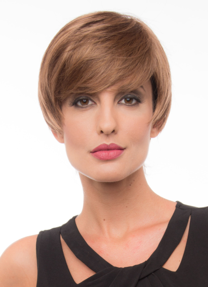 Der Kopfbereich besteht aus handgeknüpften Einzelhaaren auf einem monofilamentösen Untergrund. Der Filmansatz imitiert die Kopfhaut und sorgt für einen nahtlosen Übergang zum Haar.