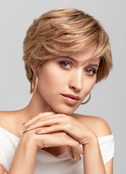 Mit dem raffinierten und angesagten Kurzhaarschnitt der Echthaarperücke Prime Short Lace HH aus der Human Hair Collection erhalten Sie einen modernen und ausgesprochen weiblichen Look! Die trendy Frisur von Gisela Mayer zeichnet sich durch ein unkompliziertes Styling, brillante Farben und ein herrliches Volumen am Oberkopf aus. Den lockeren und leicht angeschrägten Pony können Sie dank des eingearbeiteten Filmansatzes an der Stirn problemlos aus dem Gesicht frisieren, ohne auf Authentizität verzichten zu müssen. Auch im oberen Bereich der Damenperücke befindet sich ein ähnlicher, handgeknüpfter und transparenter Stoff, welcher einen natürlichen Haarwuchs imitiert. Die übrige Montur aus dehnbaren Tressen sorgt dafür, dass sich diese standardgroße Gisela Mayer-Perücke (54-56 cm) sanft anschmiegt. Die echten Haare dieses Modells können Sie mit speziellen Stylingprodukten und sogar mit Hitze in die gewünschte Form bringen – probieren Sie doch einmal verschiedene Looks aus!