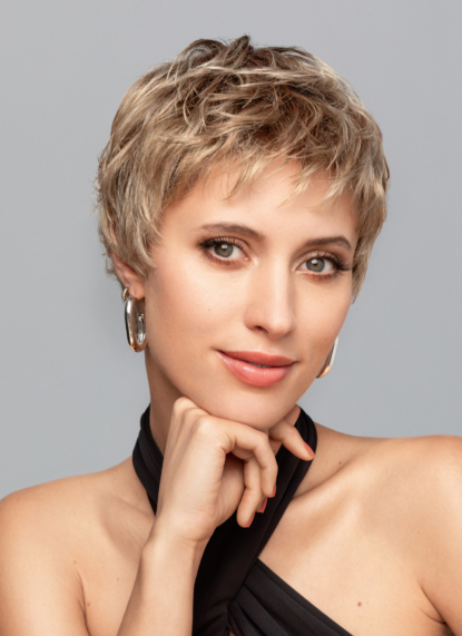 Die Kunsthaarperücke Zara Lace Special aus der Vision-3000-Kollektion von Gisela Mayer verbindet einen modernen Kurzhaarschnitt mit besonders natürlicher Wirkung. Die Frisur ist weich strukturiert, gleichzeitig klar definiert und wirkt lebendig, ohne unruhig zu erscheinen. Sie unterstreicht die Gesichtszüge harmonisch und verleiht eine frische, moderne Ausstrahlung. Das verwendete Kunsthaar ist besonders pflegeleicht und unkompliziert im Styling - selbst nach dem Waschen fallen die Haare wieder zurück in ihre ursprüngliche Form.Ein zentrales Merkmal dieses Modells ist die Lace Front, die einen äußerst realistischen Haaransatz im Stirnbereich ermöglicht. Der Übergang zur Haut ist fein gearbeitet und nahezu unsichtbar. Dadurch entsteht eine hohe Stylingfreiheit, da die Haare offen, seitlich oder leicht zurück getragen werden können, ohne dass die Perücke erkennbar ist. Die Montur ist leicht, atmungsaktiv und sehr komfortabel aufgebaut. Sie passt sich der Kopfform sanft an und sorgt für ein sicheres, angenehmes Tragegefühl. Zara Lace Special wird in Standardgröße für einen Kopfumfang von ca. 54–56 cm gefertigt und eignet sich besonders für Trägerinnen, die eine natürliche Optik, hochwertige Lace-Verarbeitung und hohen Tragekomfort schätzen.